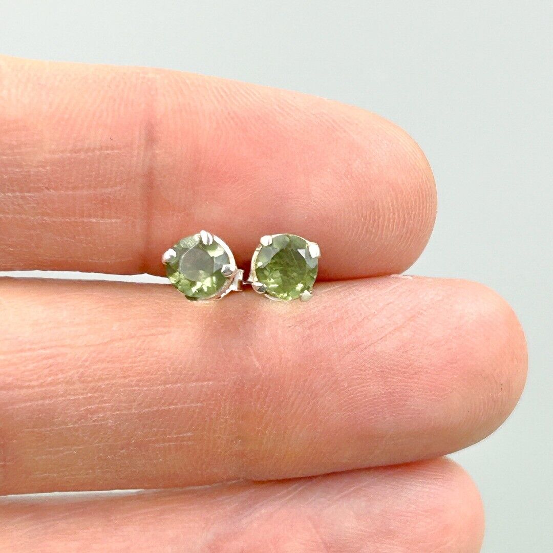 Moldavite Sterling Silver Stud Claw Earrings 5mm ( C2 )