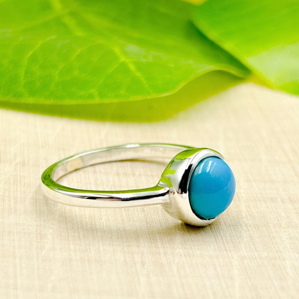 Turquoise Round 7mm Sterling Silver Ring Size 7